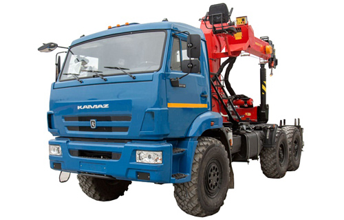 Выносливый тягач 43118 с КМУ соответствует экологическому классу Евро 5. Эксплуатация такого тягача обеспечивает транспортировку грузов с помощью специальной сцепки. Колесная формула 6Х6 повышает проходимость транспортного средства в условиях бездорожья.
